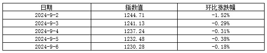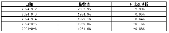 最终,TCI收于1951.66点,相比8月30日(第35周最后一个发布日)累计下跌113.75点,累计跌幅为5.51%。