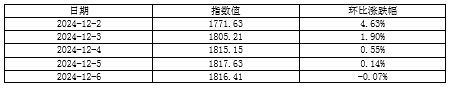 最终,TCI收于1816.41点,相比11月29日(第48周最后一个发布日)累计上涨123.19点,累计涨幅为7.28%。