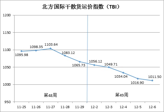 第49周(12月2日-6日),北方国际干散货运价指数(TBI)走势如下图所示: